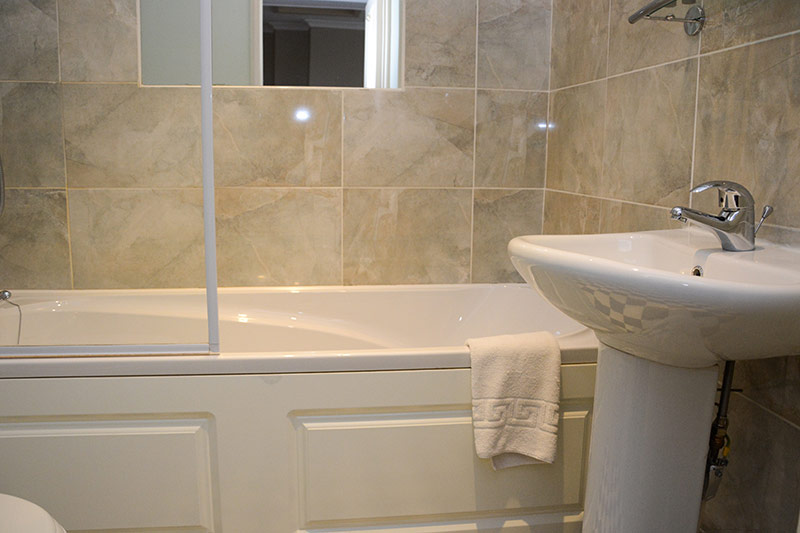 Situated on the second floor this large family room has a king size double bed and a single bed with an ensuite bathroom with bath and shower over. It has ample room for an extra child’s bed or cot.