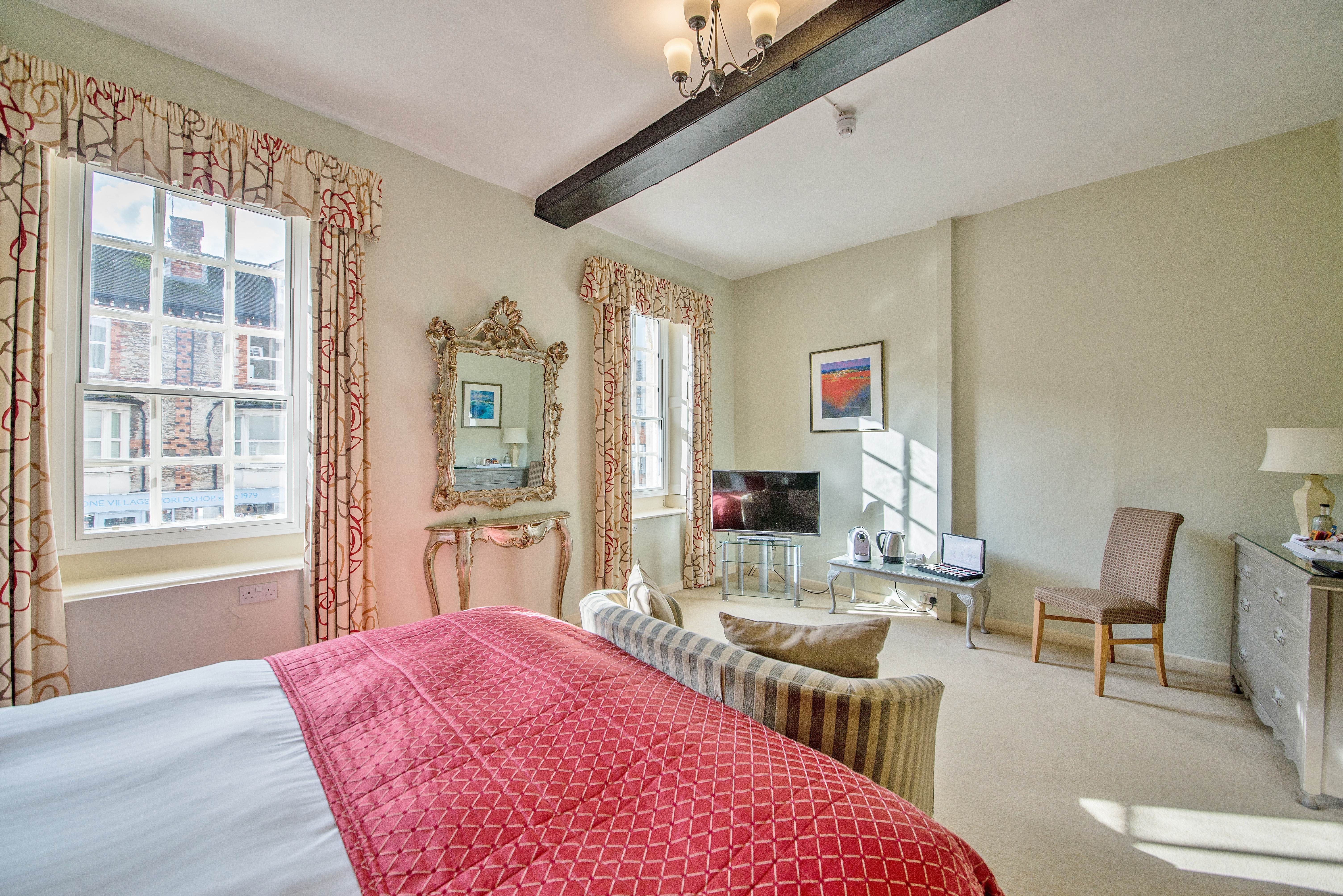 Situated on the first floor this large room offers a super-king deluxe double bed and has an ensuite bathroom with bath and shower over the bath.
